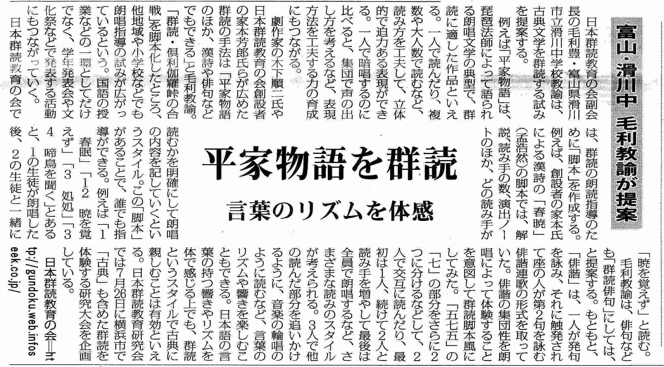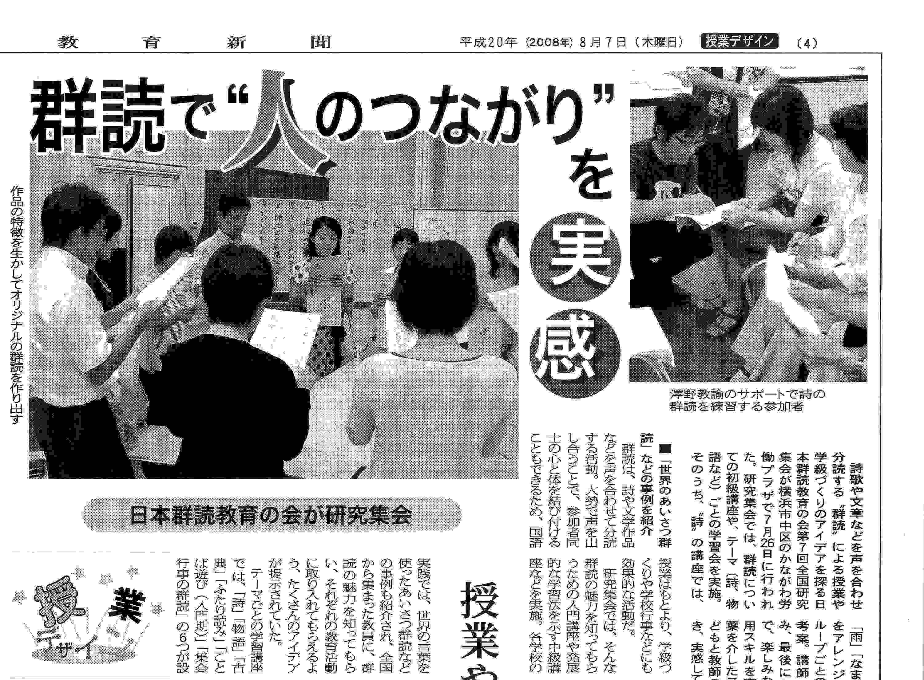 大会の様子が新聞に掲載されました。 日本教育新聞 平成20年(2008年)6月23日(月)